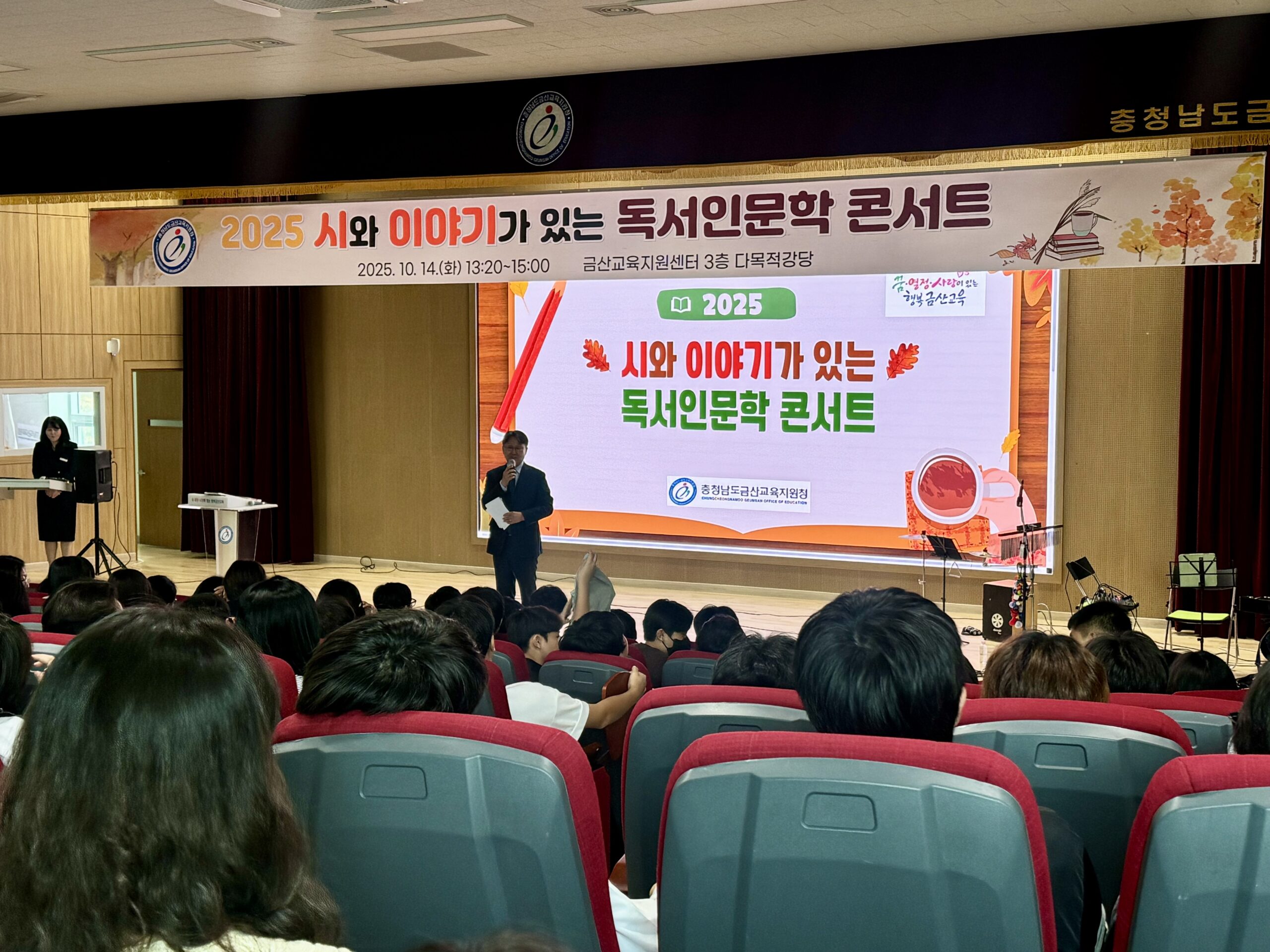 금산교육지원청은 14일 금산교육지원센터 3층 다목적 강당에서 ‘2025 시와 이야기가 있는 독서인문학 콘서트’를 개최했다.