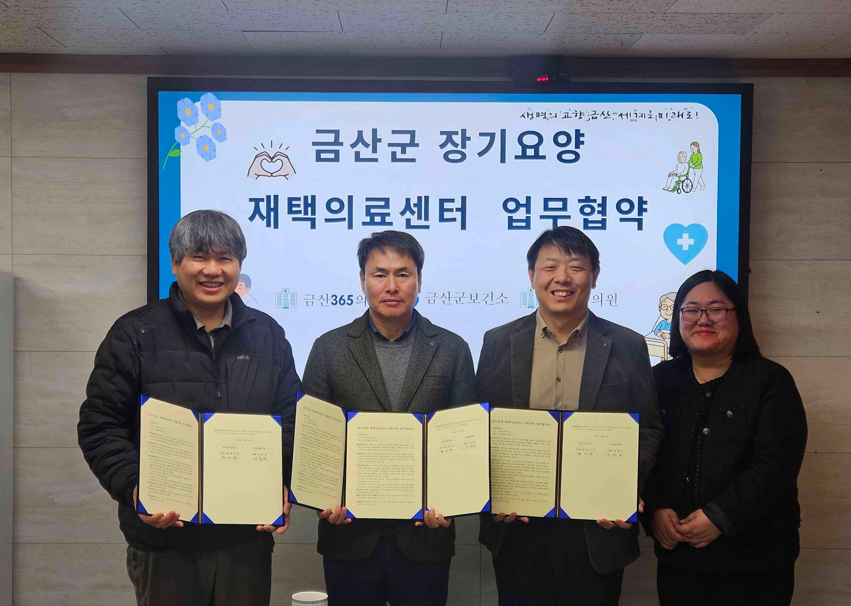 금산군보건소는 24일 보건소장실에서 지역 의료기관인 금산365의원, 금산한의원과 장기요양 재택의료센터 시범사업 업무협약을 체결했다.