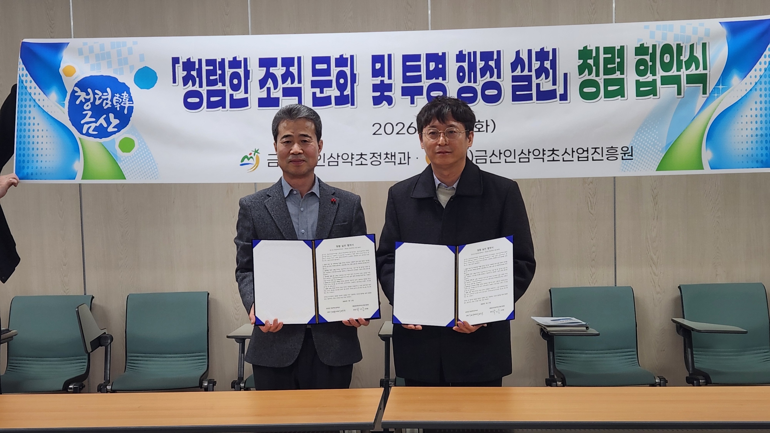 군 관계자는 “올해는 안전성 검사 기반의 유통 체계가 본격 시행되는 중요한 해인 만큼 진흥원과의 유기적인 협력이 무엇보다 중요하다”며 “오늘 협약한 청렴 정신을 바탕으로 금산인삼 산업의 투명성을 높일 수 있는 정책을 추진하겠다”고 말했다.