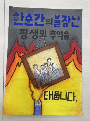 고학년부 최우수상에는 금산중앙초등학교 장설아 학생의 ‘추억’ 작품이 선정, 화재로 잃을 수 있는 소중한 것들을 섬세하게 표현했다는 점이 돋보였다.