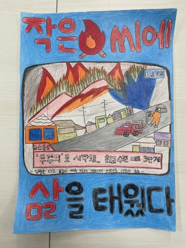 저학년부 최우수상은 금산초등학교 임아연 학생의 ‘작은 불씨에 삶을 태웠다’가 차지했으며, 화재의 위험성을 뉴스 형식으로 표현한 메시지가 높은 평가를 받았다.