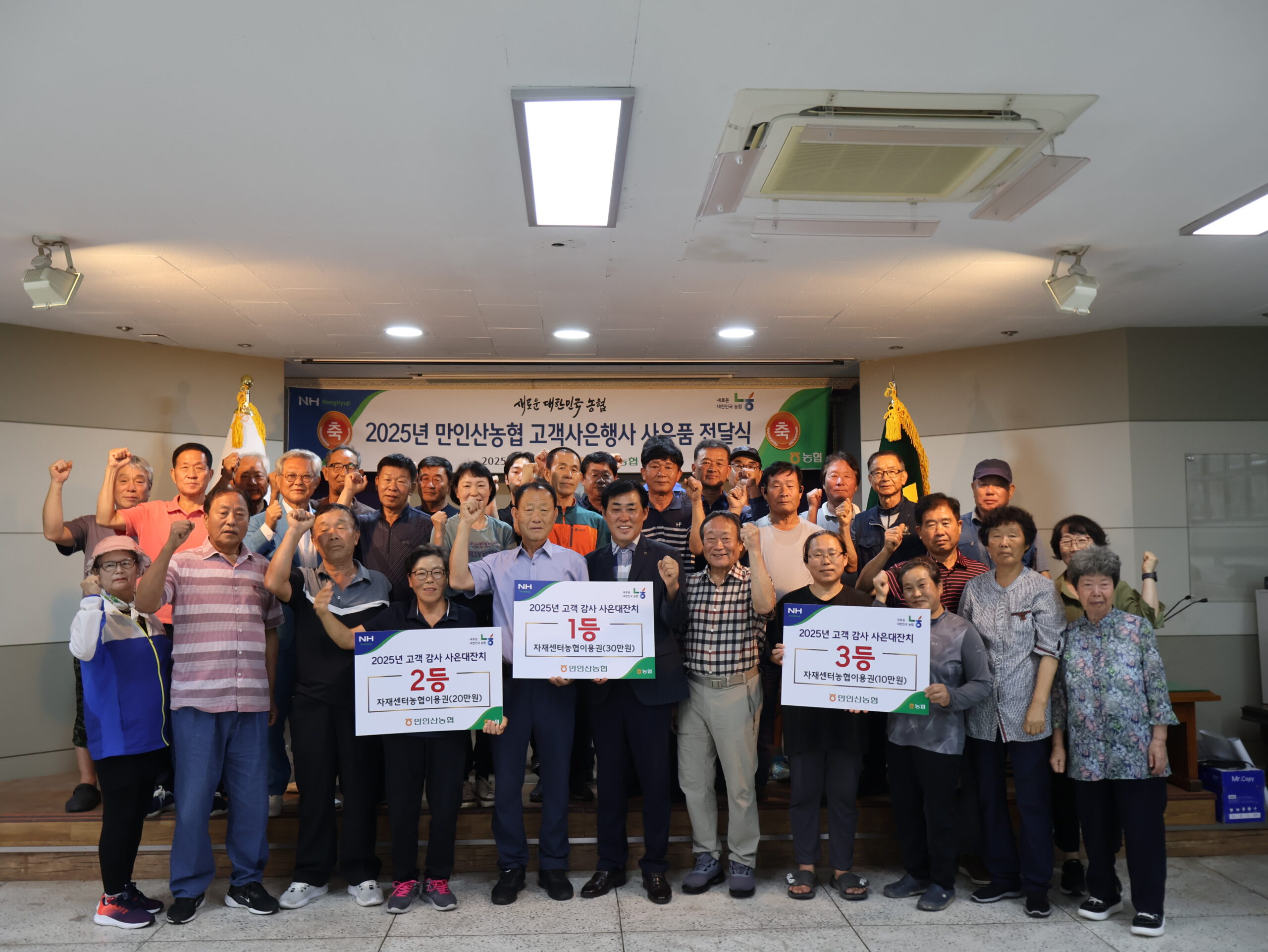 만인산농협은 26일 만인산농협에서 고객사은행사 1등, 2등 3등을 대상으로 사은품 전달식을 진행했다.